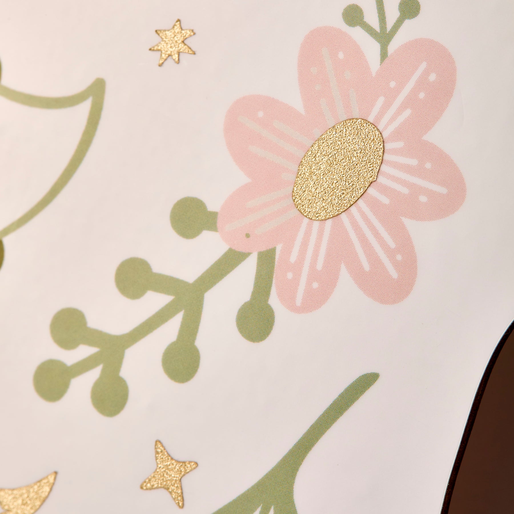 A charming dove musical wall hanging, adorned with delicate florals and soft touches of glitter, ready to bring peace and calm to your little one’s room. Playing a soothing melody, she’s the perfect companion for quiet nap times and dreamy bedtimes.