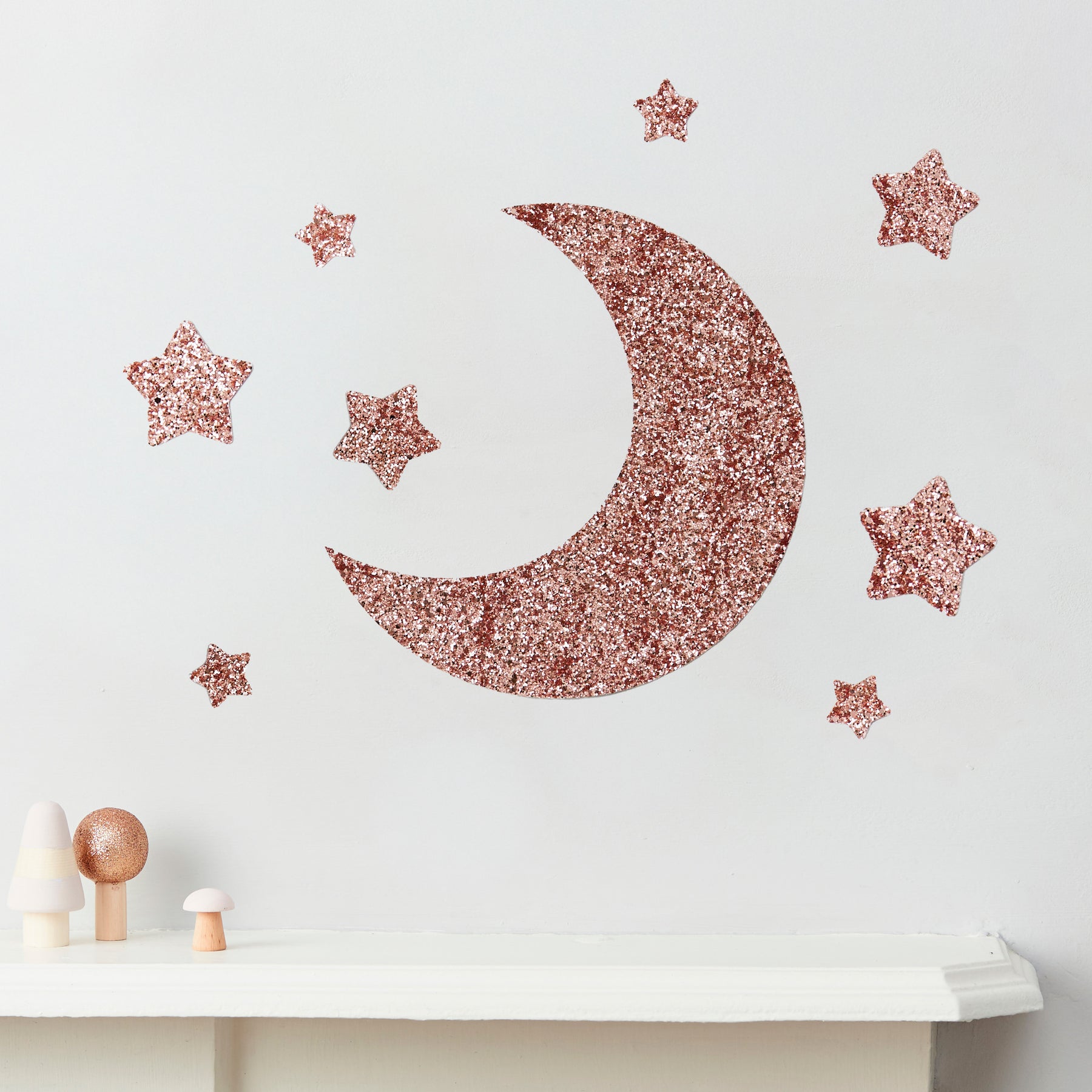 Rose Gold Glitter Moon & Stars Wall Stickers Set®